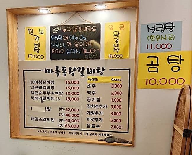광주 상무지구 마륵동 왕갈비탕 메뉴