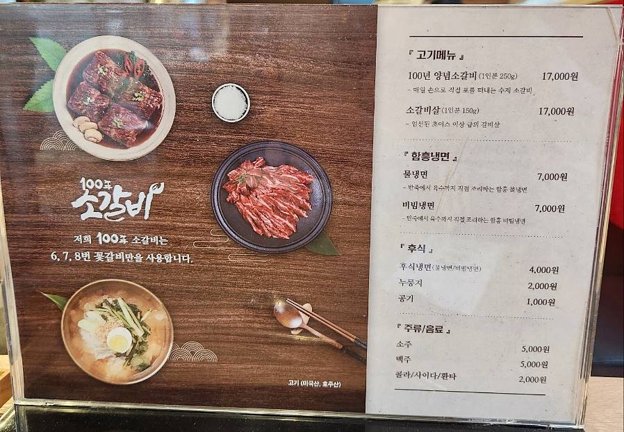광주 갈비 맛집 운암동 100년 소갈비 메뉴