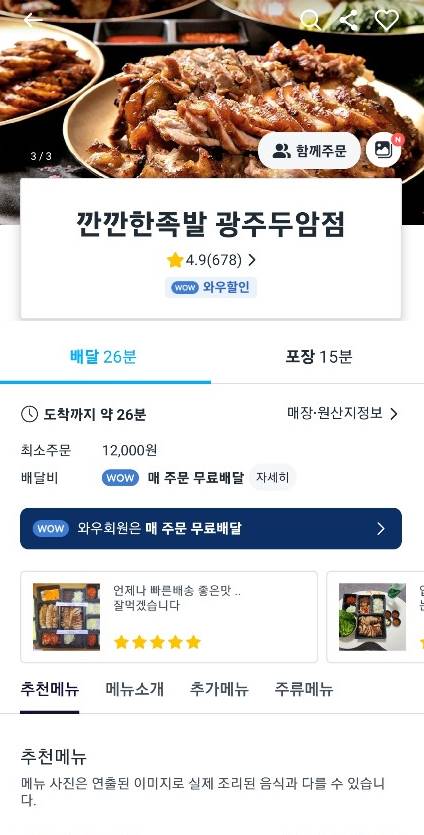 주말에 아이들과 푸지게 낮잠을 자고 일어나 밥도 먹고 반찬도 없고 하여 배달의 민족과 쿠팡이츠를 보고 있다가 선택한 건 바로 ~ 깐깐한 족발!