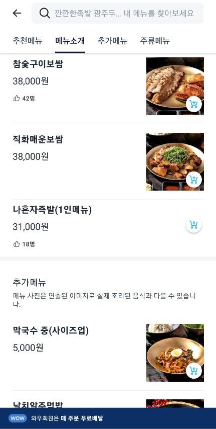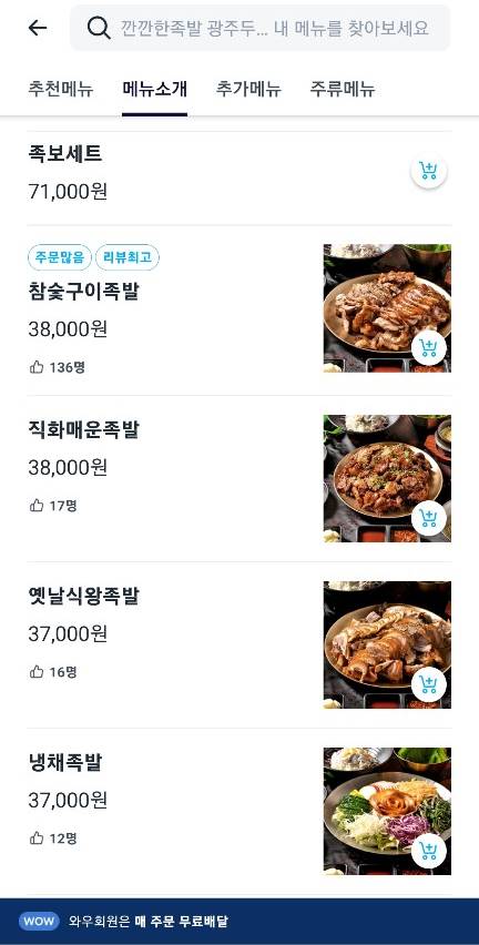 깐깐한 족발은 아이들도 잘 먹고 어른들의 매운맛 욕구도 채워줄 수 있어서 주문을 했다. 쿠팡이츠가 원래는 쿠팡 와우회원에게는 할인이 된다고 했으나 이번에 배달비가 무료로 다 변경되는 과정에서 할인이 없어져버렸다.