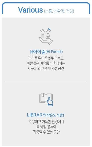 커뮤니티 시설로는 힐스 라운지, H아이숲, 피트니스, 게스트하우스, 독서실, 골프연습장, 국공립어린이집등 여러 커뮤니티 시설이 있어 입주민들의 삶의 질을 향상해 줄 겁니다.