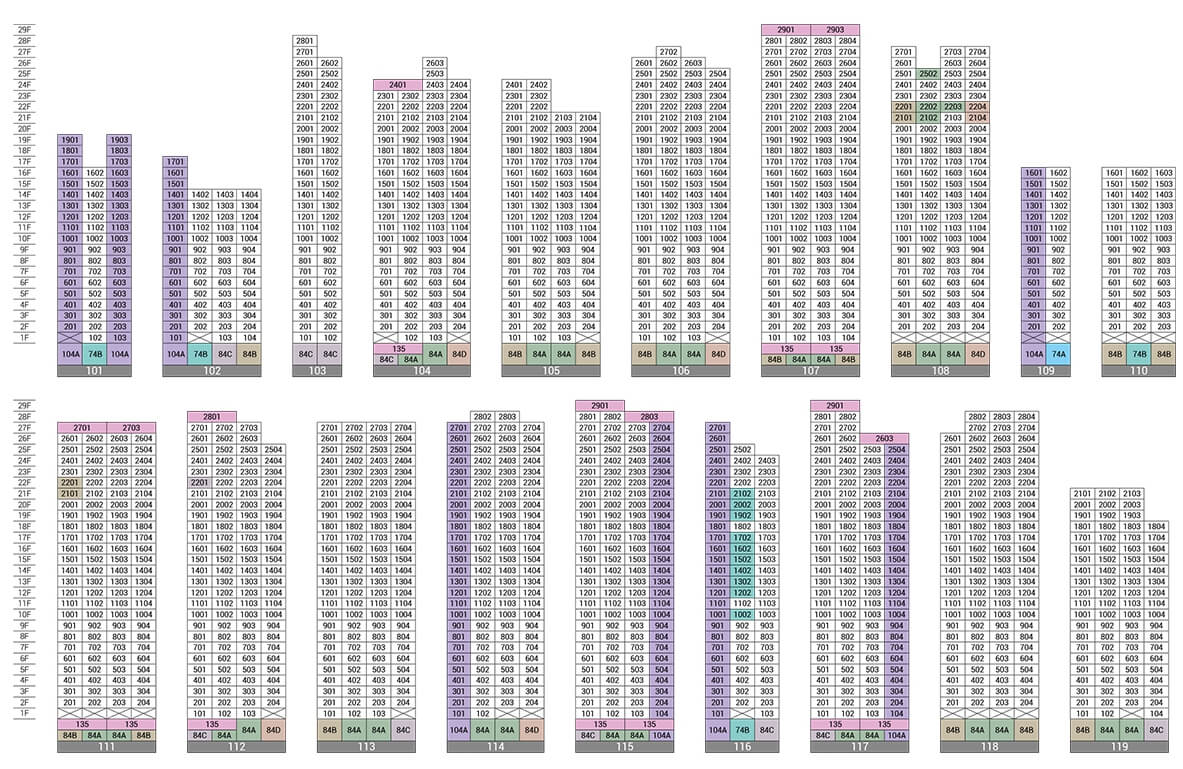 - 84A타입-673세대(일반분양 4), 84B타입-350세대(일반분양 4), 84C-242세대(일반분양 1), 84D-125세대(일반분양 2)