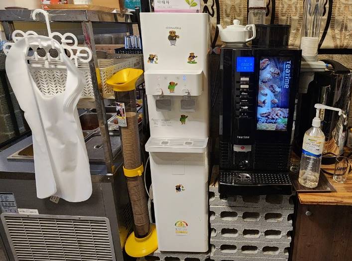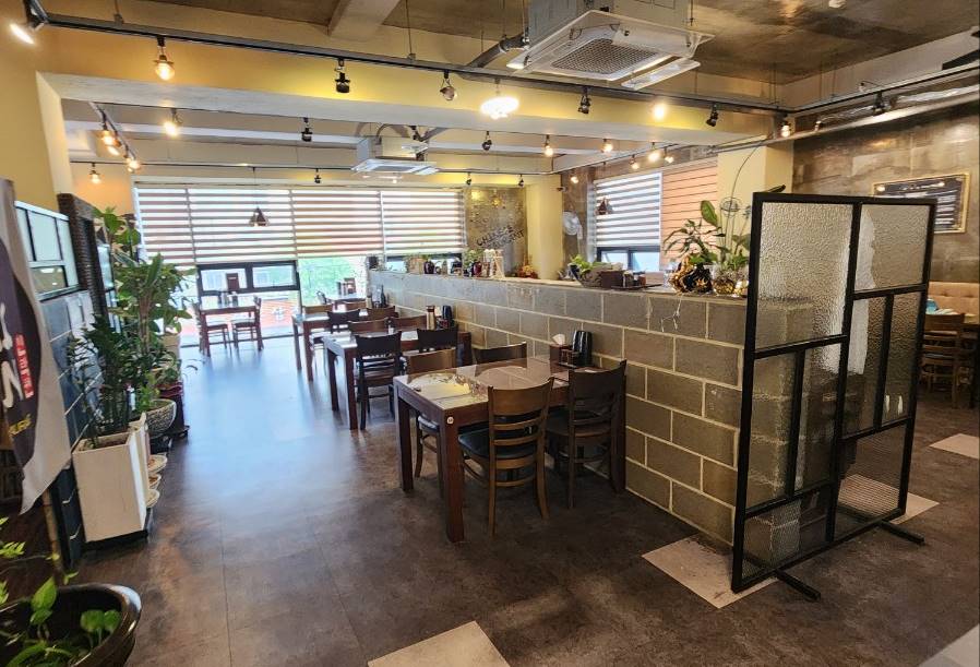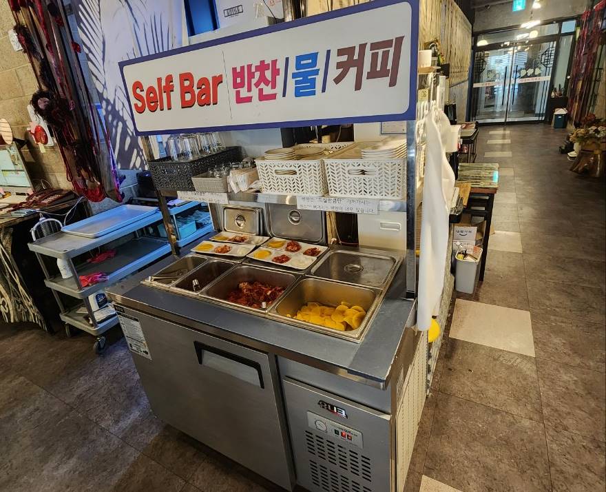 신락원 화정점은 2층에 위치하고 있어 계단이나 엘리베이터를 이용해서 올라가야 되고 내부는 깔끔한 인테리어로 꽤 널찍한 공간이 마련되어 있었어요. 칸막이를 통해 룸처럼 이용하는 공간도 있었고 셀프바도 있어 반찬, 물, 커피까지 자유롭게 이용이 가능했어요.