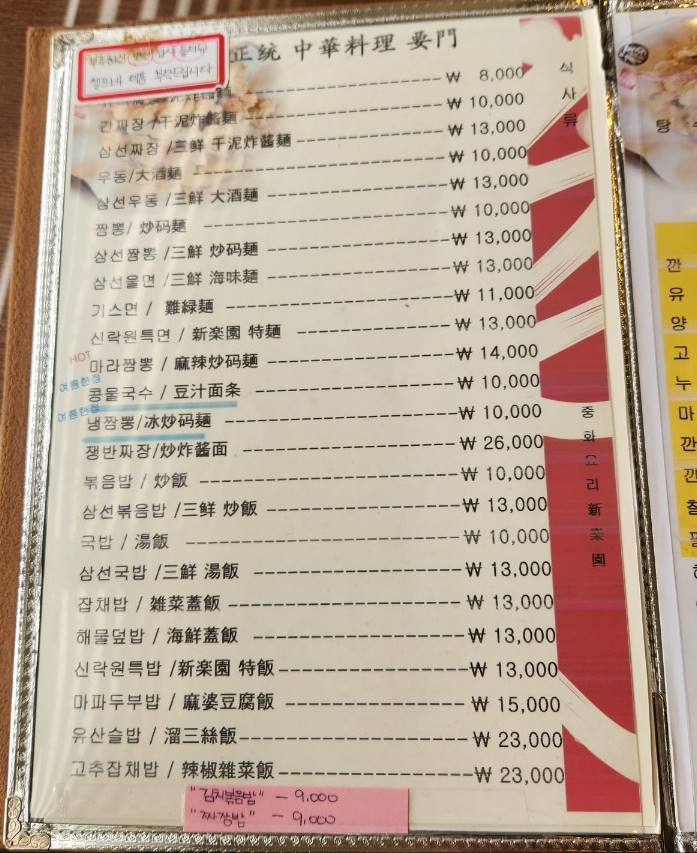 신락원 메뉴