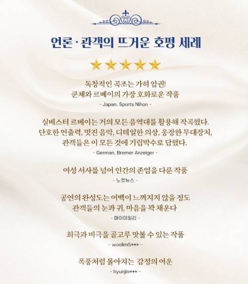 - 러닝타임 : 총 180분 (1막 90분 , 20분 쉬는시간, 2막 70분 )