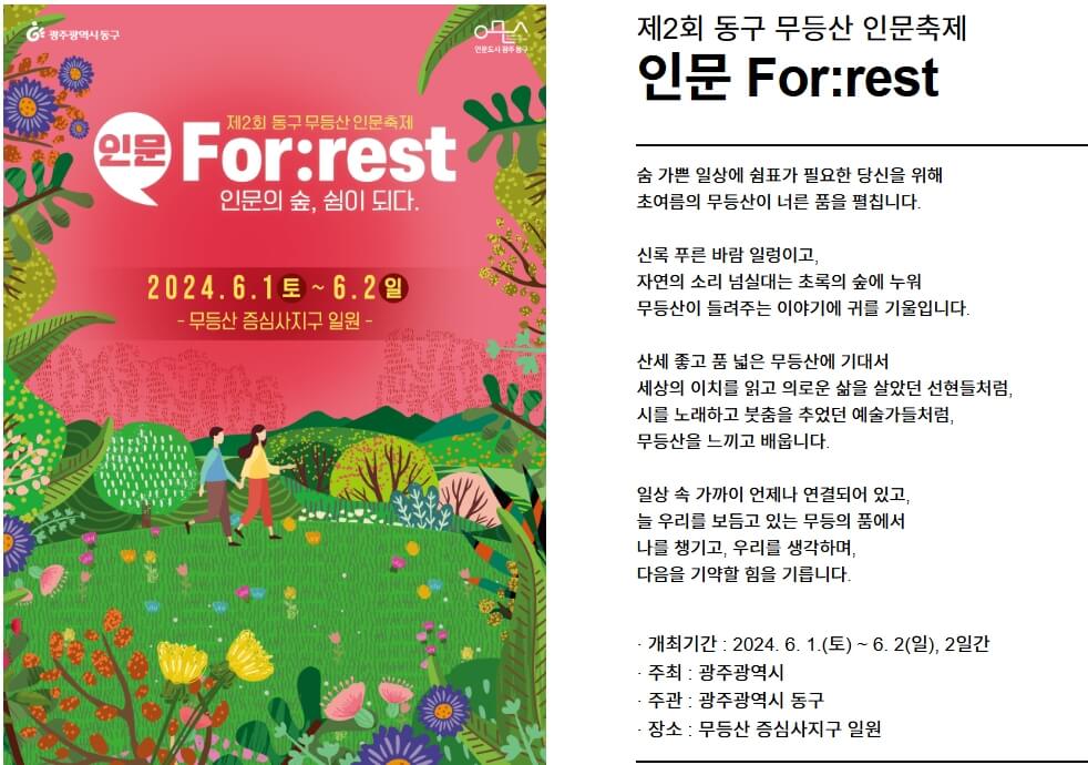 무등산 인문 축제는 광주 무등산국립공원 증심사 일원에서 펼쳐지며 자연과 더불어 인문, 예술과 함께하는 축제입니다.