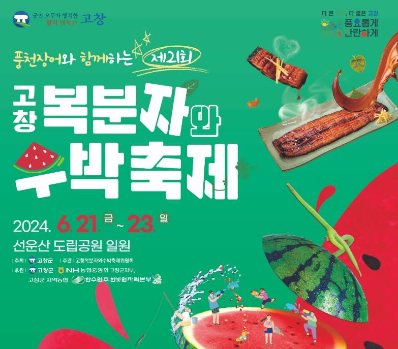 고창 복분자와 수박축제에서는 고창에서 유명한 복분자, 수박, 장어 등을 만나 보실 수 있고 다양한 축하공연과 프로그램이 예정되어있습니다.