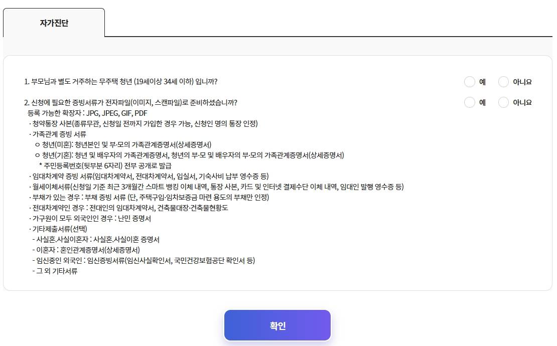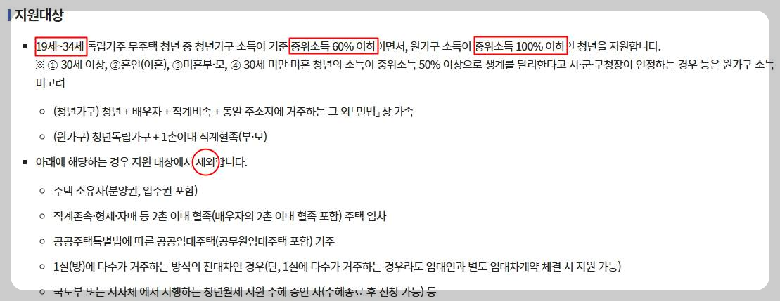 부모님과 별도로 거주하는 무주택청년이 대상이며 만 19~34세인 경우 지원을 받을 수 있다고 하니 해당되면 지원을 받아야겠죠?