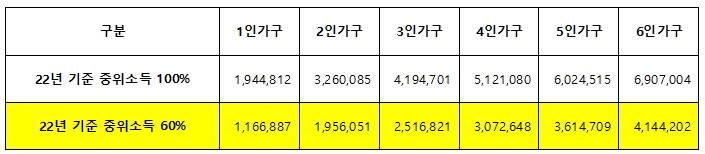 ✅ 청년가구: 중위소득 60% 이하
