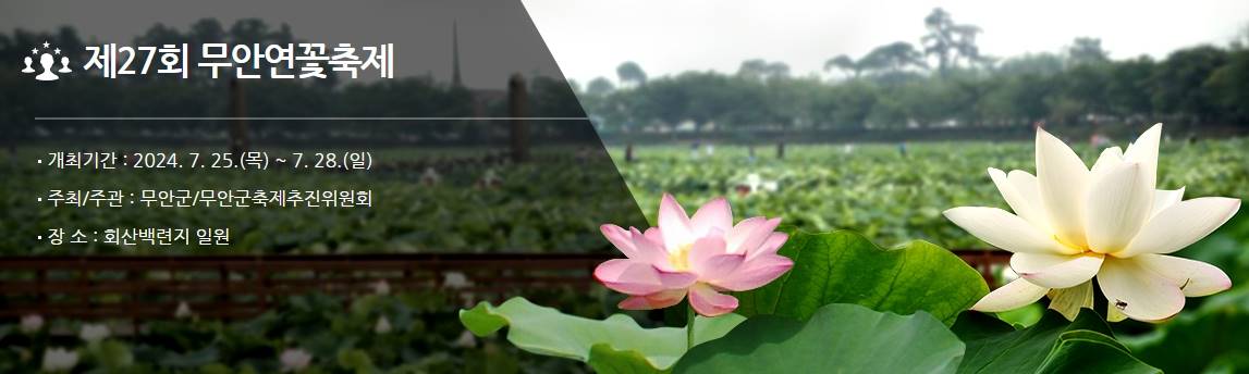 무안 연꽃 축제는 회산 백련지에서 개최되고 25일부터 4일간 진행이 됩니다.