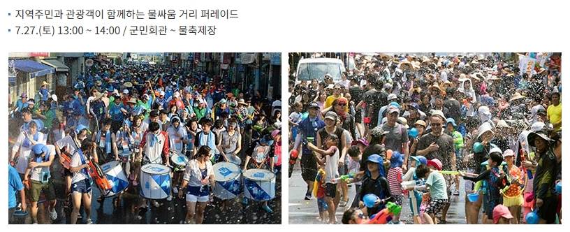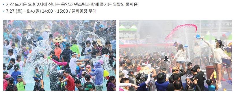 물싸움과 수상 프로그램, 워터락 풀파티등 남녀노소 어른 아이 할 거 없이 최고의 놀이터가 될 축제이다.