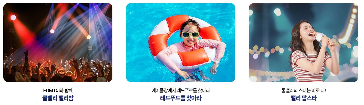 햇볕이 없는 그늘진 공간, 시원한 물과 바람을 만나 볼 수 있고 20M 규모의 수영풀과 워터슬라이드와 더불어 다양한 행사가 준비되어 있습니다.