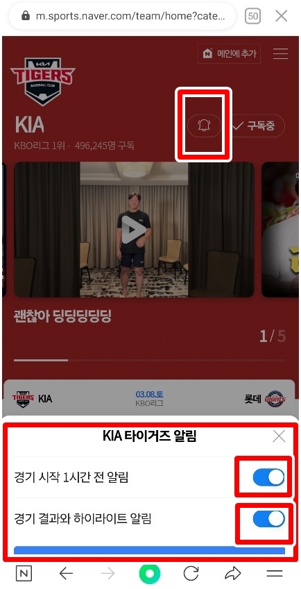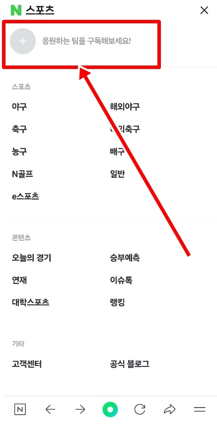 👉 4. " + " 버튼 또는 "응원하는 팀을 구독해 보세요!" 버튼을 눌러주세요.