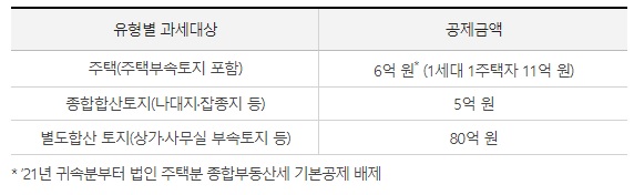 주택이나 토지등 에 대해서 일정 금액을 공제해 주는데 매년 개정이 되고 있고 2022년 7월에는 22년도에 한시적으로 적용될 것으로 보이는 1세대 1 주택자 14억 원까지 공제해주는 법안이 통과될 예정이라고 한다. 정말 세법은 계속해서 개정이 되기 때문에 계속 관심을 가지고 알아보는 수밖에 없는 거 같다.