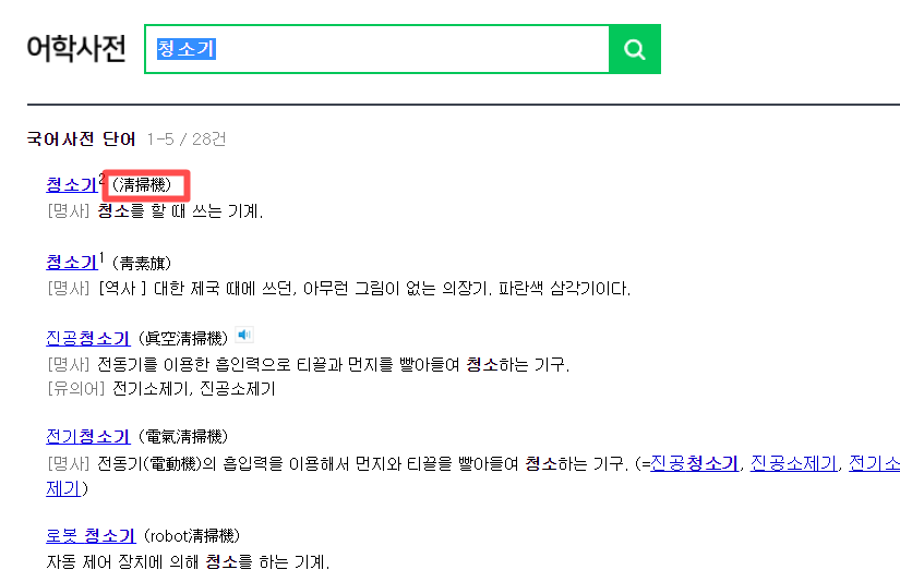 "淸掃機" 청소기가 이렇게 번역된 걸 검색창에 입력하니 핸디형 보다는 좀 더 고가인 로봇청소기, 물걸레 청소기 등이 검색된다. 이런 차이로 인해 검색어도 여러 번역사이트를 통해 해당 제품을 검색하여 자기한테 맞는 검색어를 선별해 내야 한다.