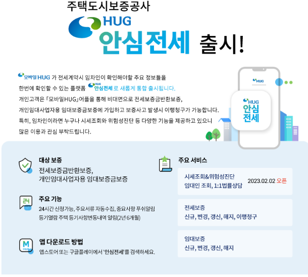 주택보증공사(HUG)에서 제작한 앱으로 전세사기가 판 치는 요즘 국토교통부에서 전세사기를 막고자 내놓은 앱입니다. 국토교통부와 한국부동산원 감정평가협회, 공인중개사협회, 주택도시보증공사(허그)등 믿을만한 기관에서 협력하여 야심 차게 출시했다고 합니다.