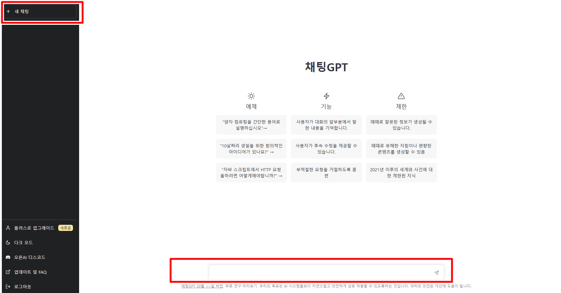 왼쪽에 새 채팅이나 가운데 아래쪽에 검색어를 입력하면 됩니다.