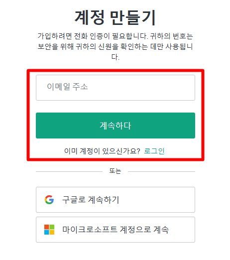 여기에 핸드폰 인증 문자도 오게 되니 핸드폰 인증도 진행해주셔야 합니다.