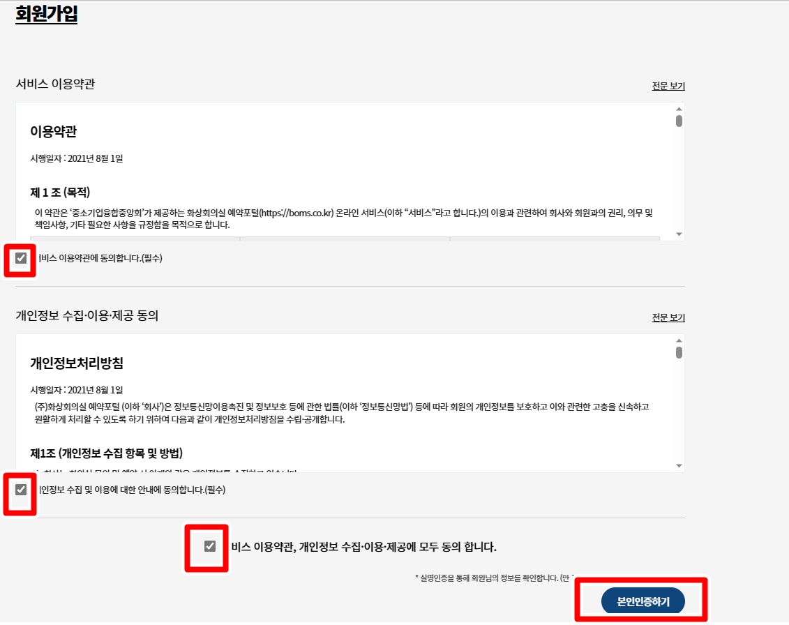 "회원가입 서비스이용약관에 동의합니다"에 체크해주시고 본인인증을 해주시면 됩니다.