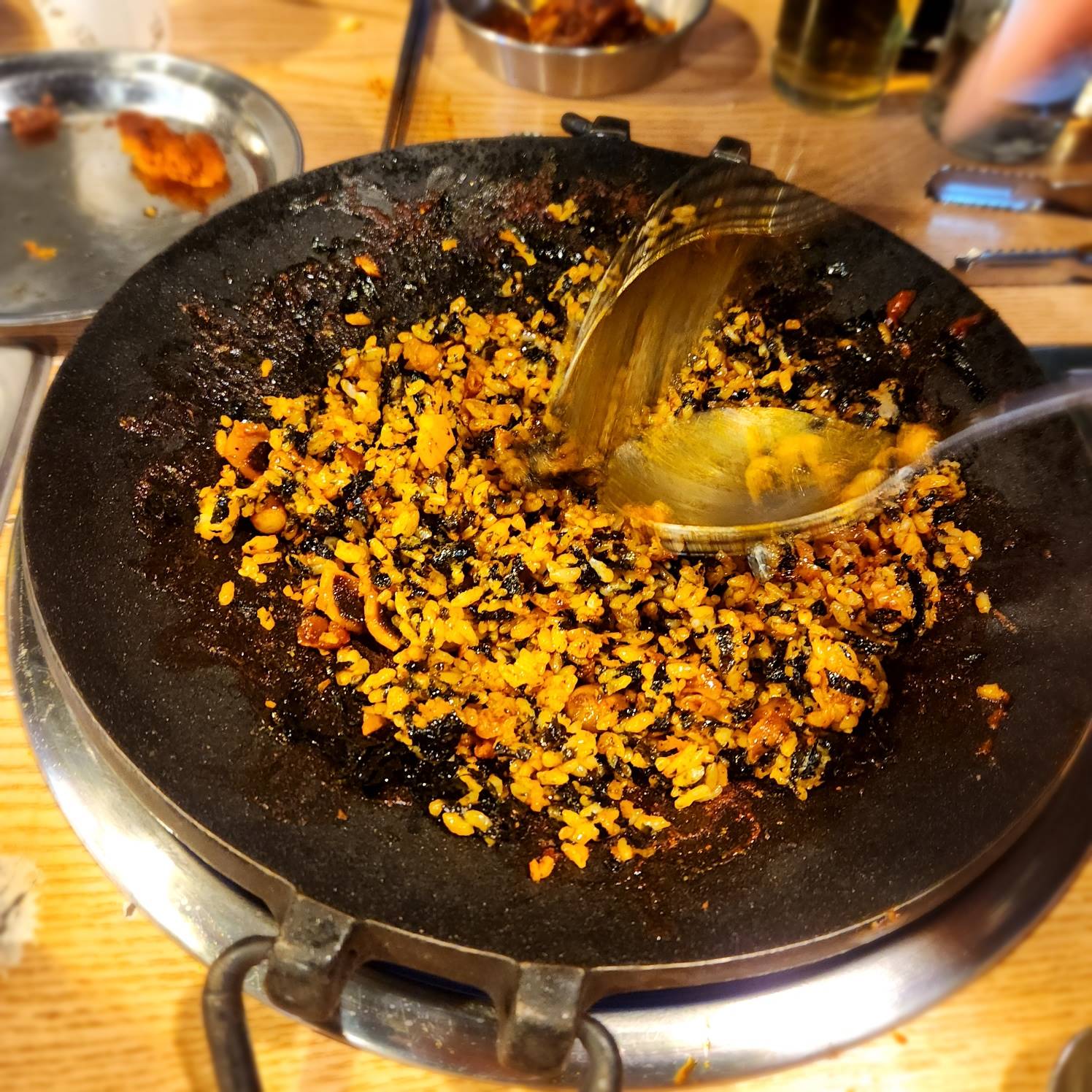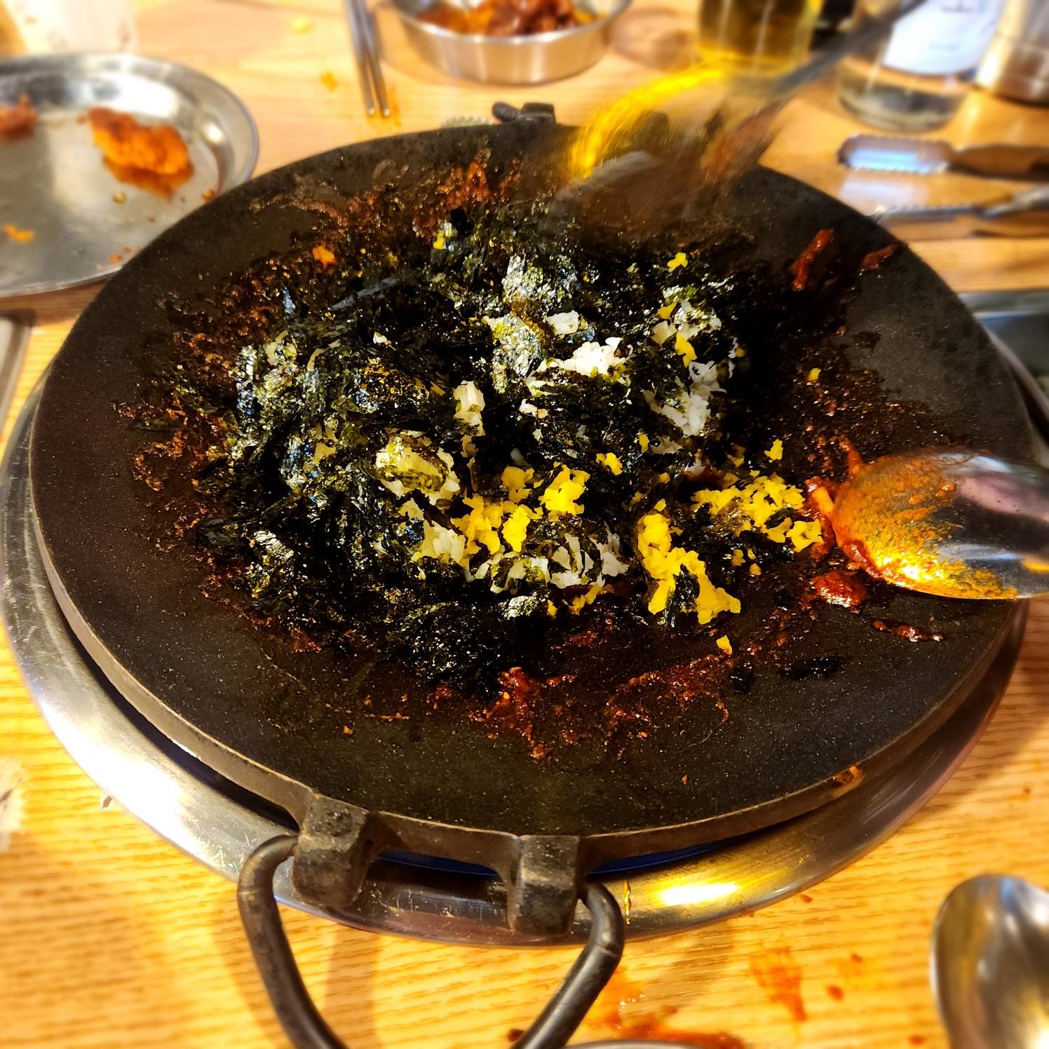김~팍팍 넣은 볶음밥을 불을 살짝 켜서 살짝 눌린 다음에 먹어줘야죠~!