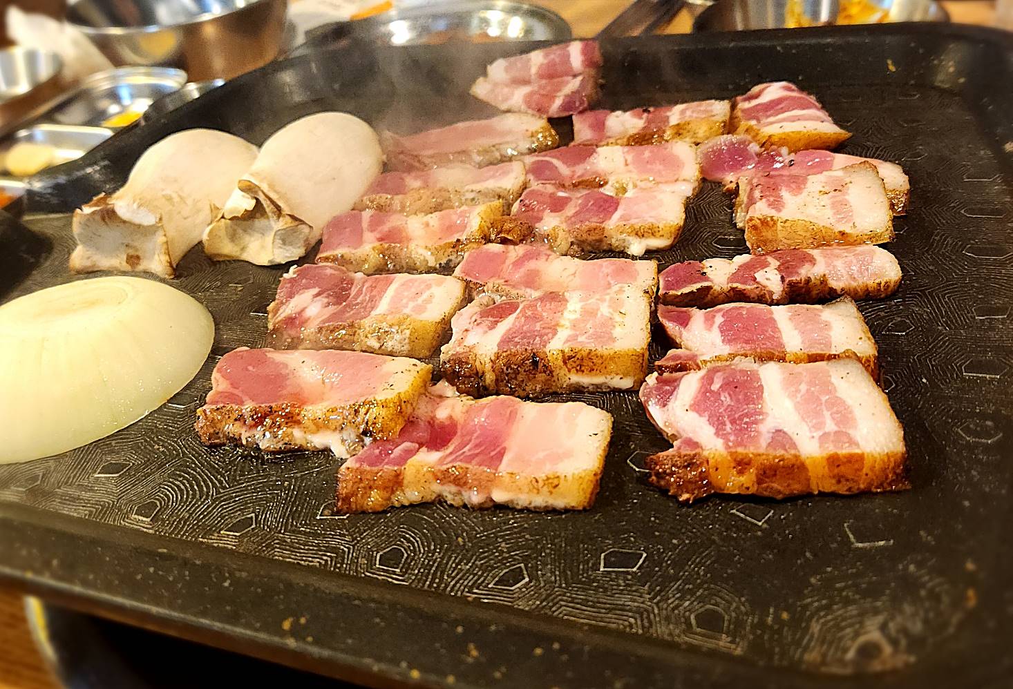 초벌이 다 된 삼겹살을 보자니 또 한 번 군침이 돌았고 ~먹부림을 주체할 수 없어 소주를 더 주문했다~