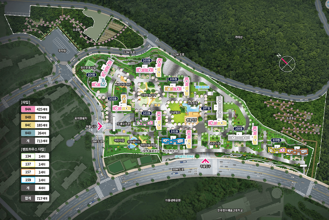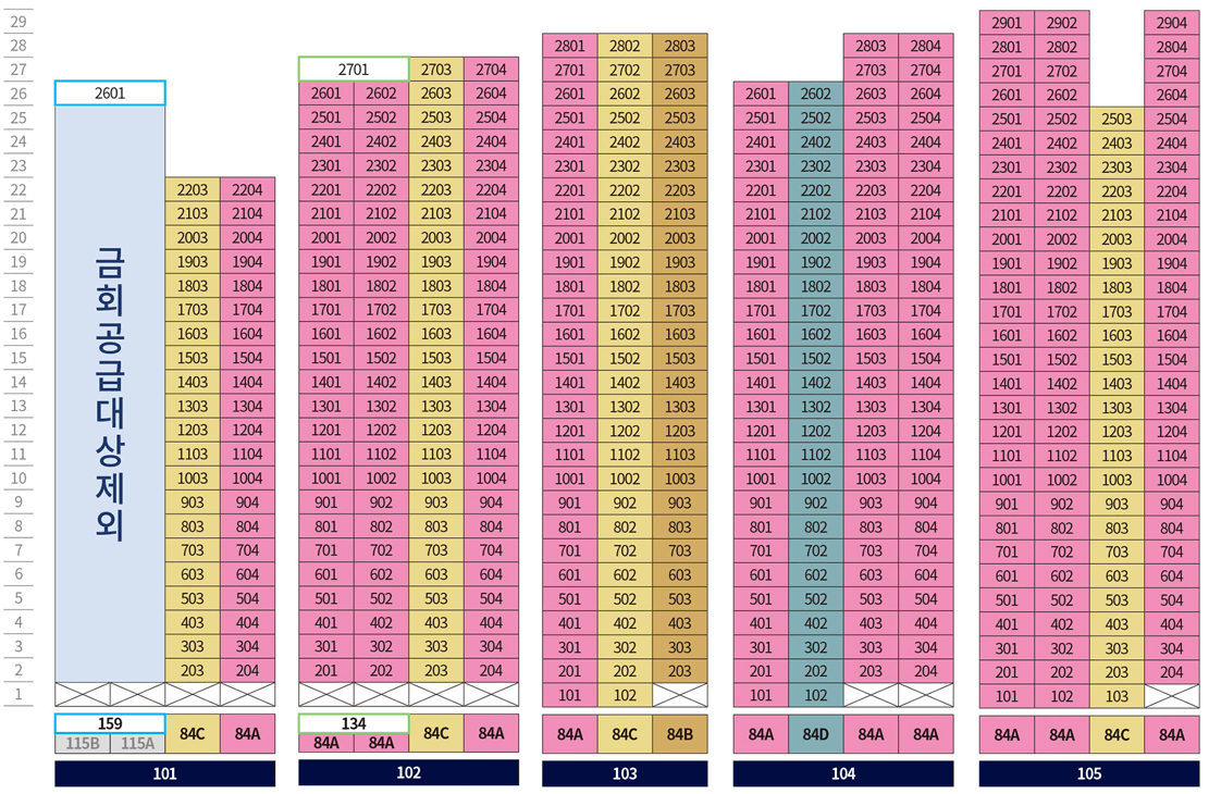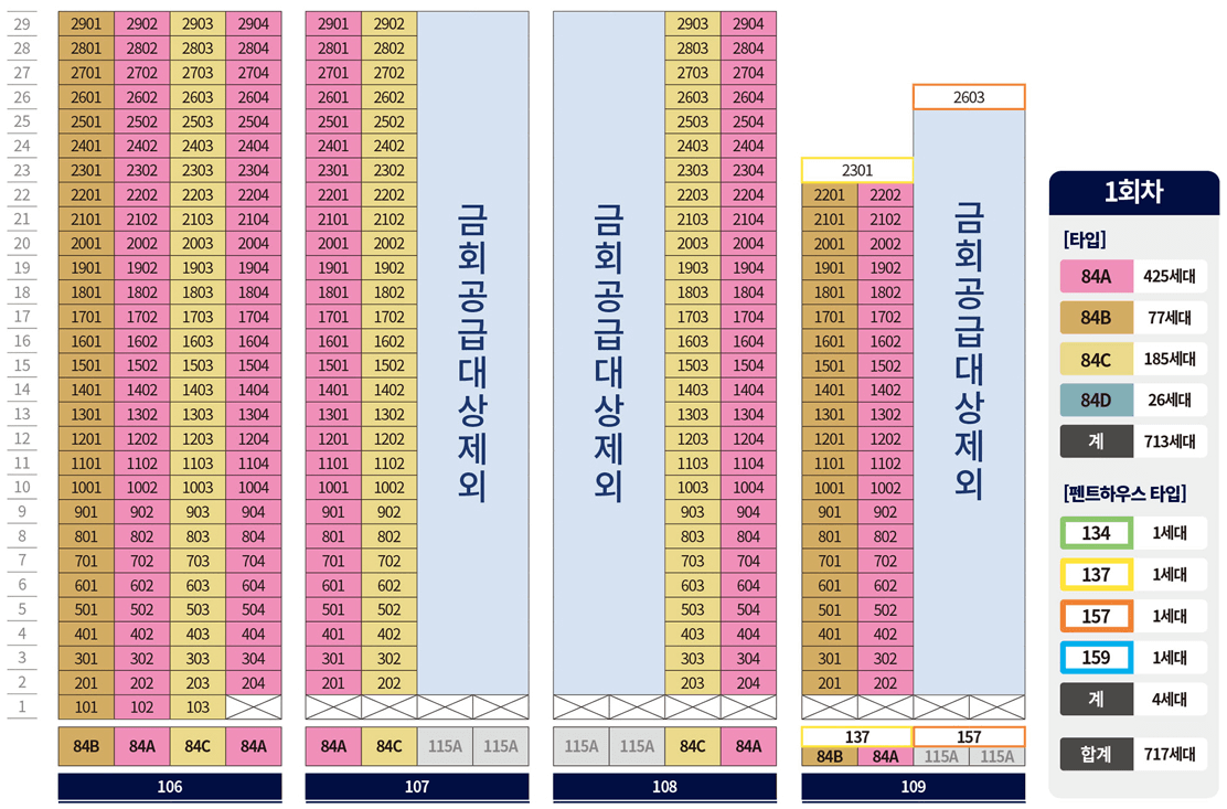- 84A타입 425세대, 84B타입 77세대, 84C타입 185세대, 84D타입 26세대