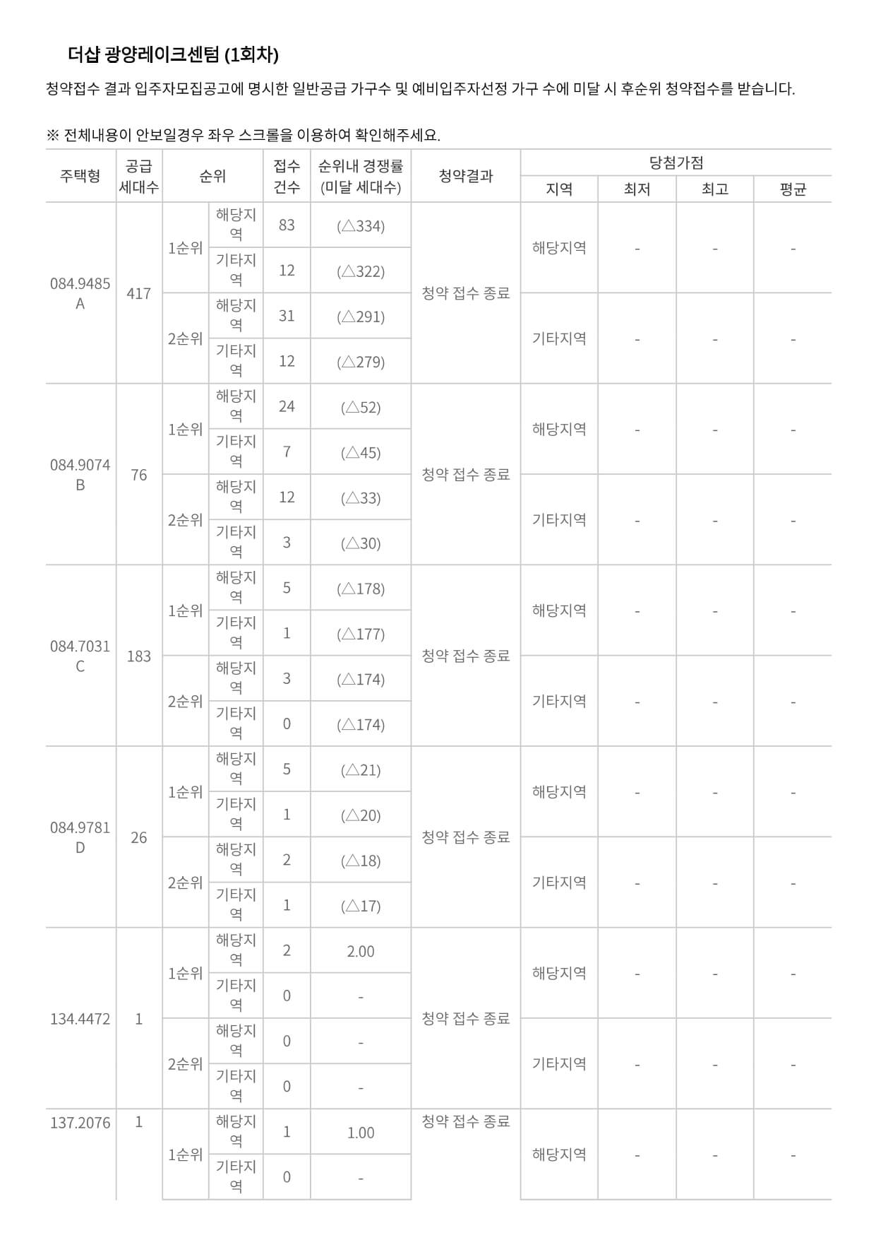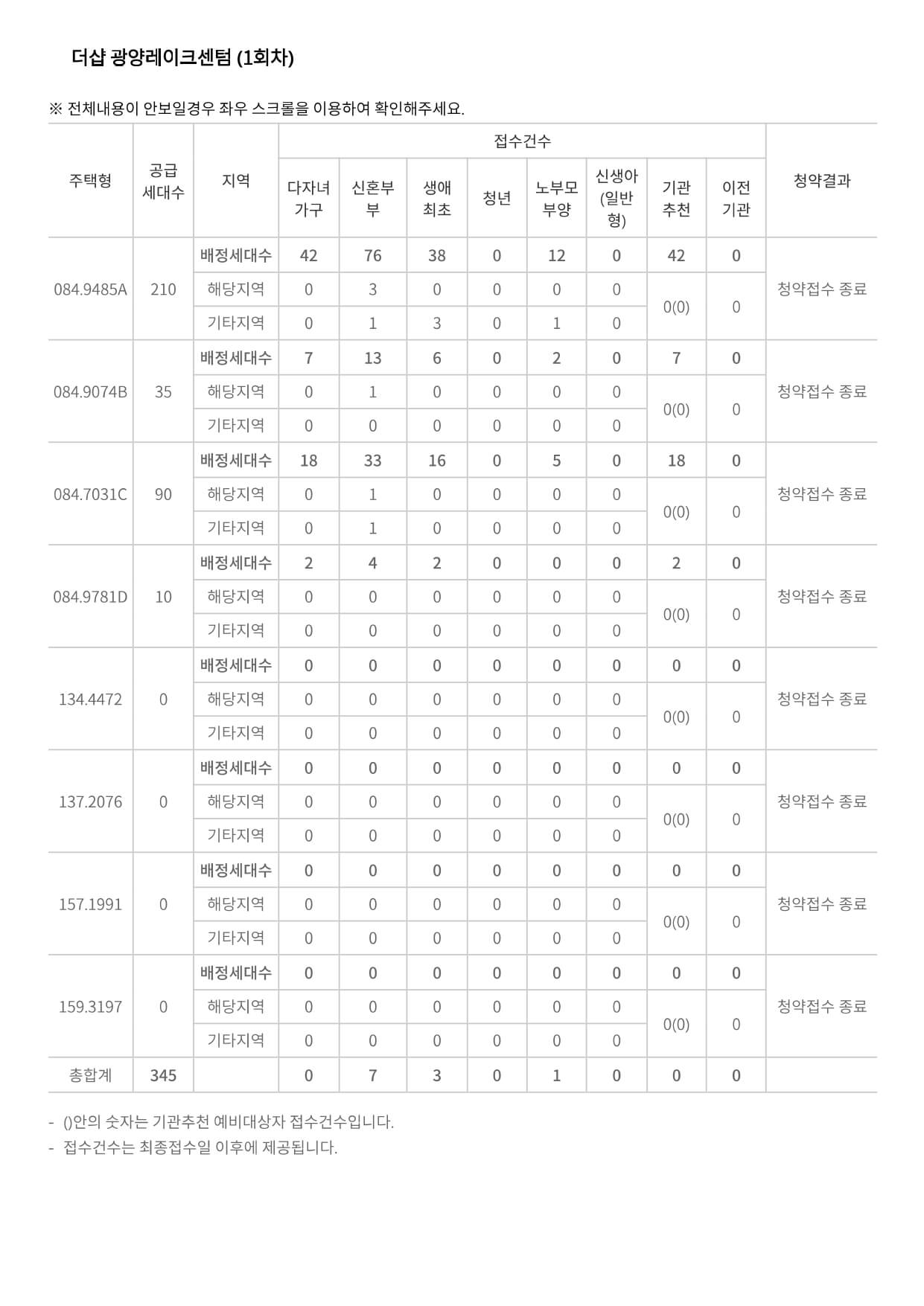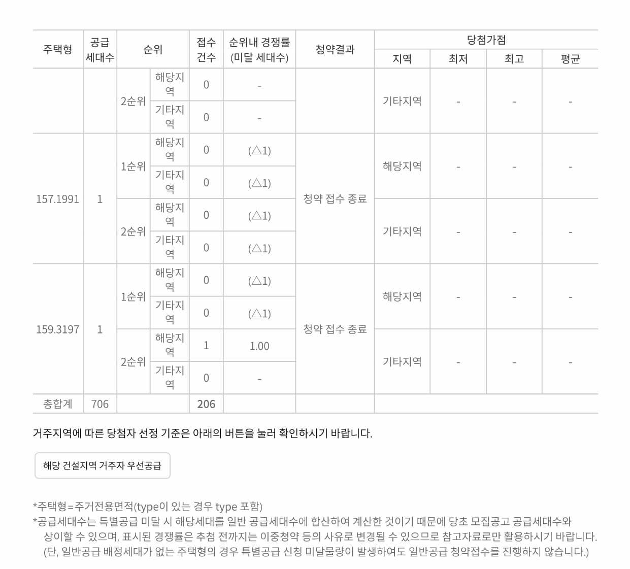 그래도 특별공급보다는 아니지만 706세대 모집에서 206세대가 접수를 하였다. 대략 15만 2천의 광양인구수가 무색하게 청약경쟁률은 저조했다. 지금 시장이 부동산의 상승시기가 아니고 하락시기여서 그런 게 아닐까 생각을 해보고 미분양에 대한 대책이 시급해 보인다.