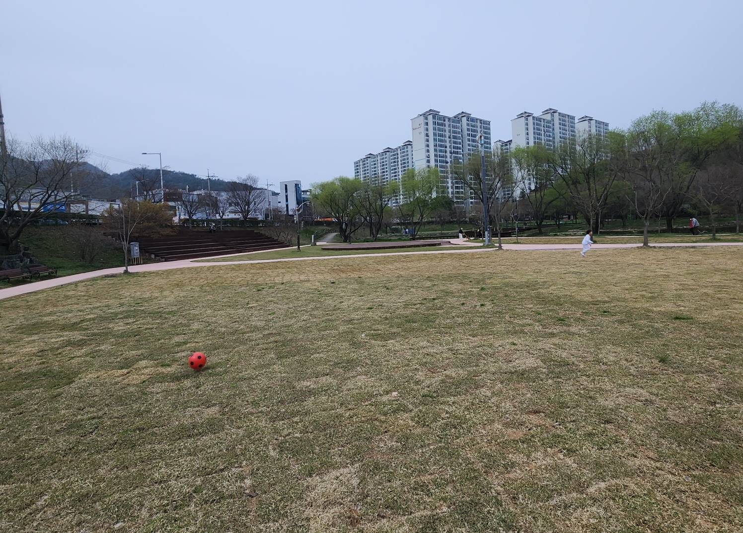 또한 앞쪽에 잔디가 고르진 않지만 아주 넓고 한가해서 아이와 공 놀이, 연날리기, 씽씽이 타기 등 여러모로 놀 수 있는 환경이 가능해서 아주 유용한 공원이었다. 그리고 공원 앞쪽에 먹거리 가게들이 많이 있어 치민을 주문해서 여기서 먹고 놀며 하는 시민들도 보여 우리 가족도 주문을 하려 했으나... 그냥 집에 가서 먹기로 하고 노는데 집중했다.