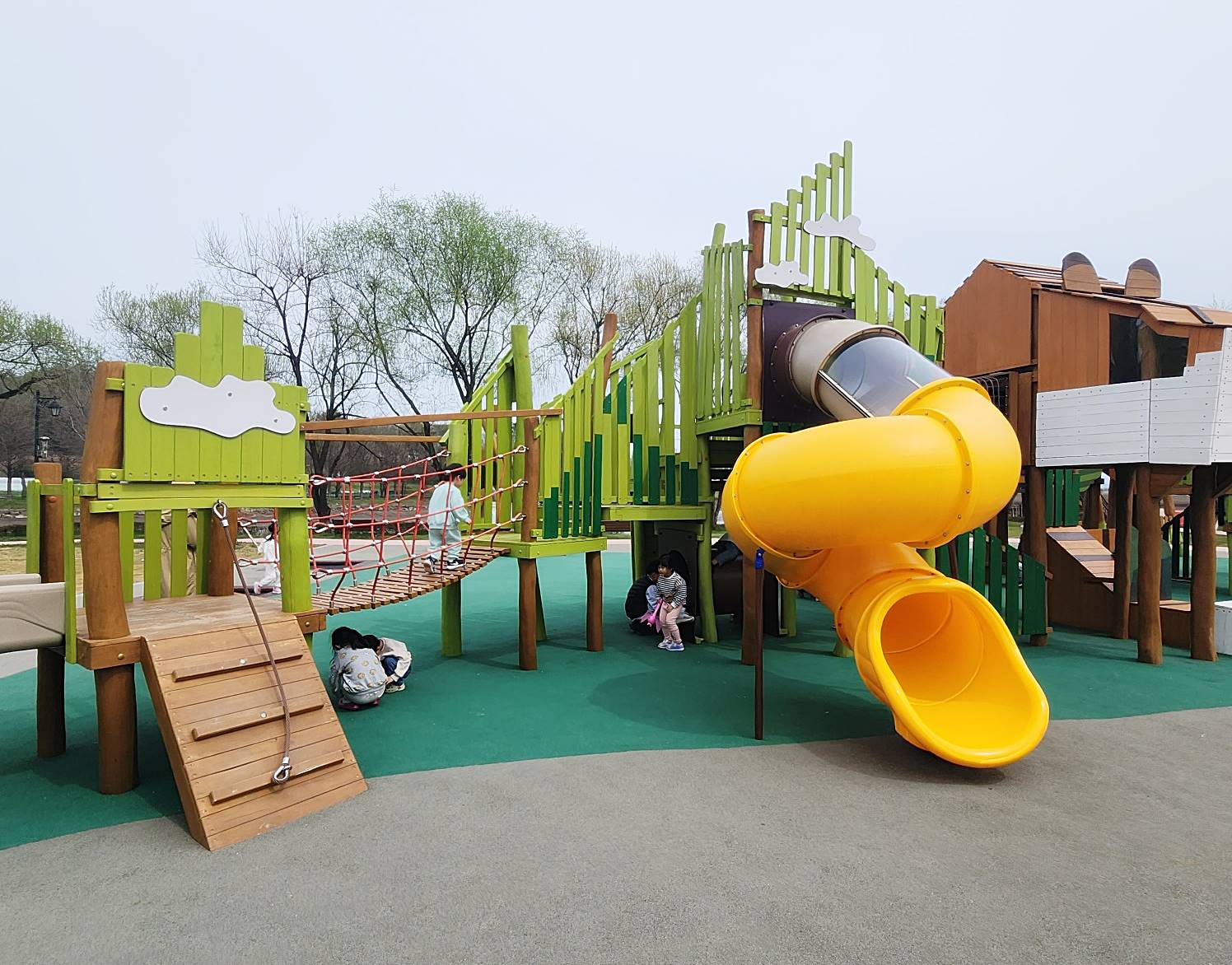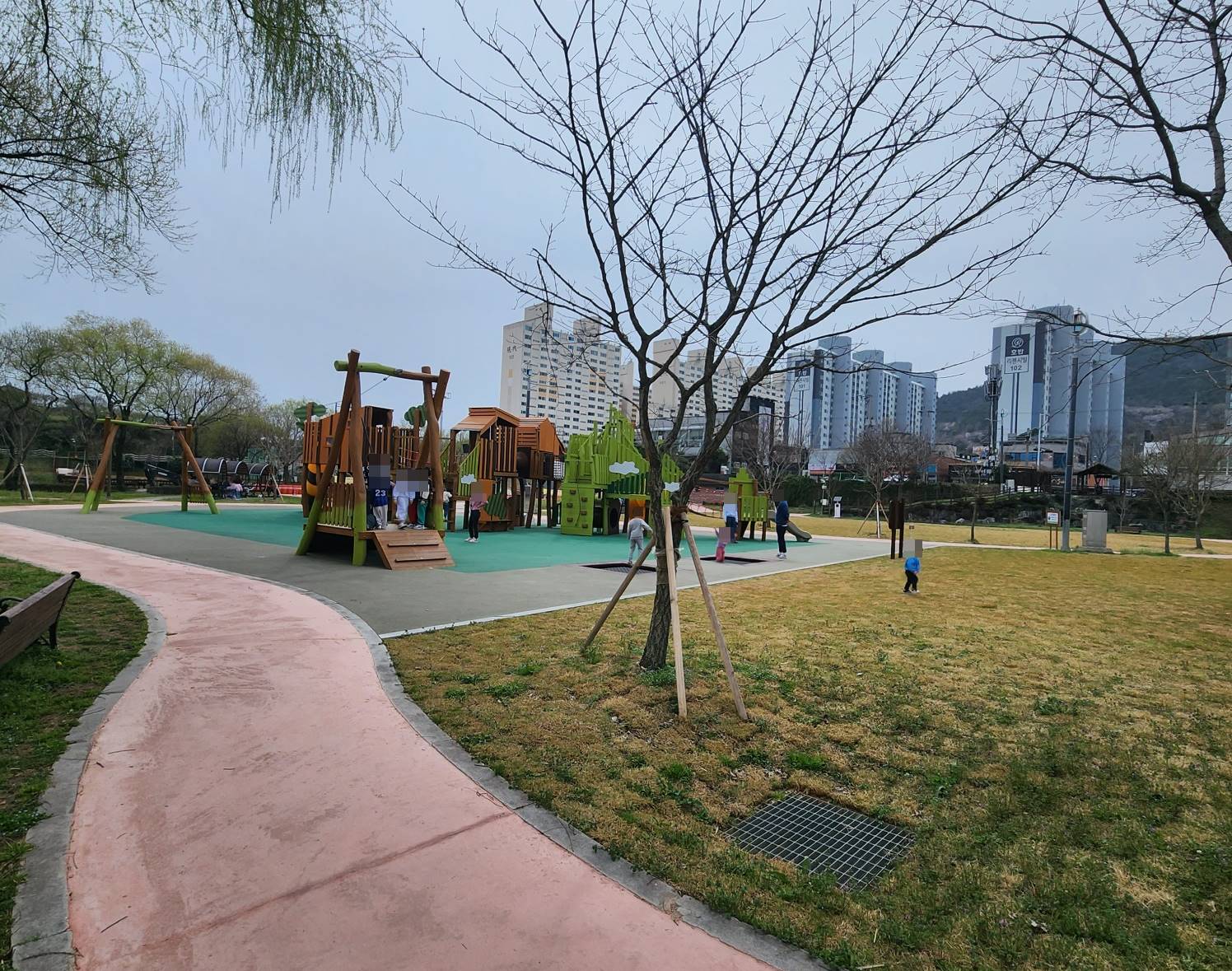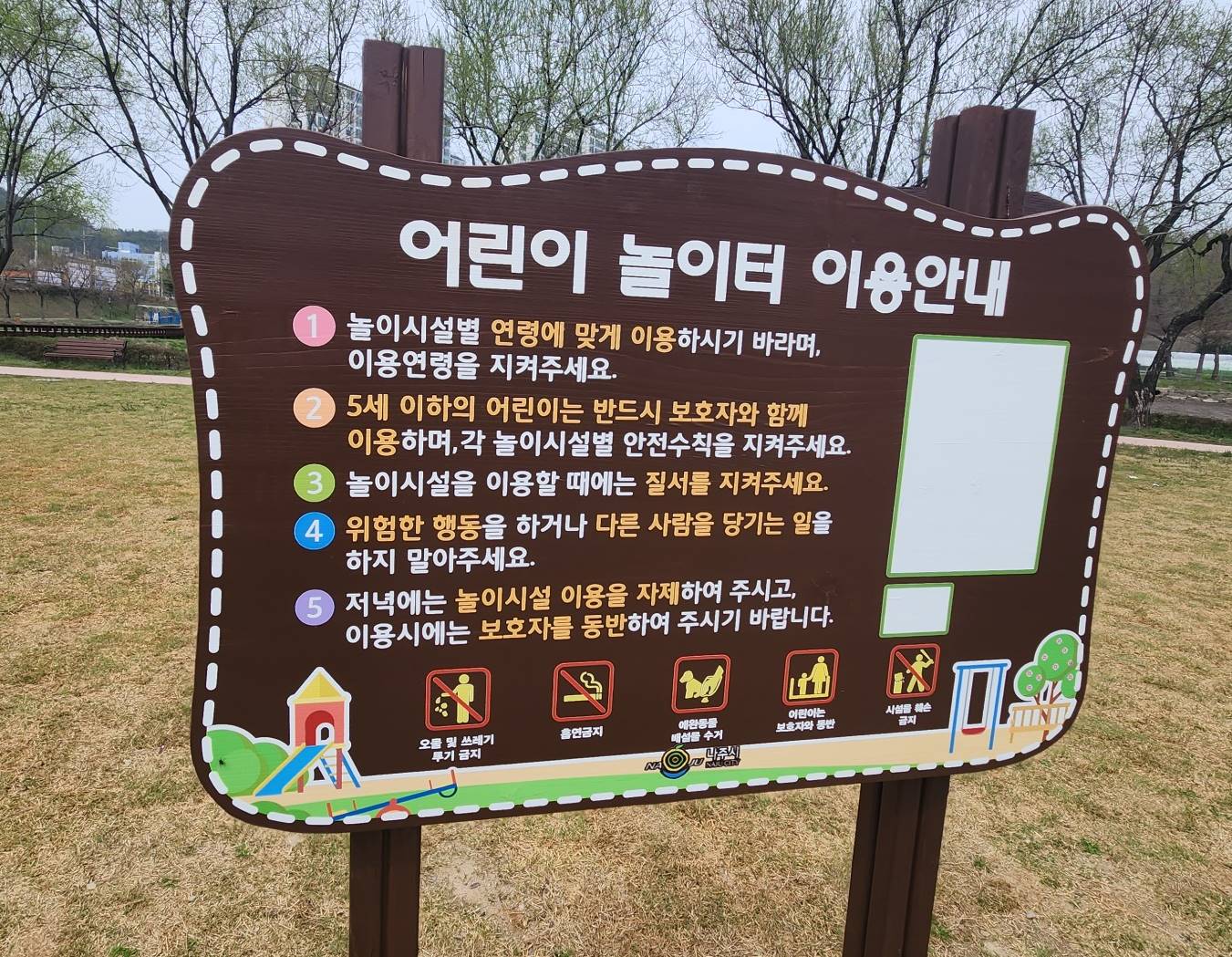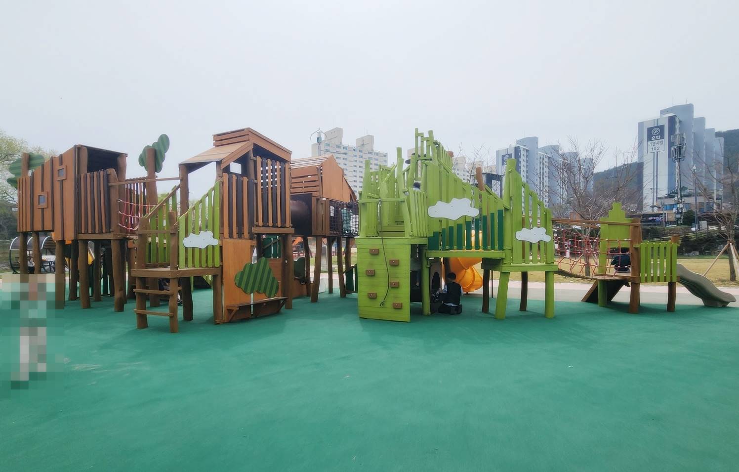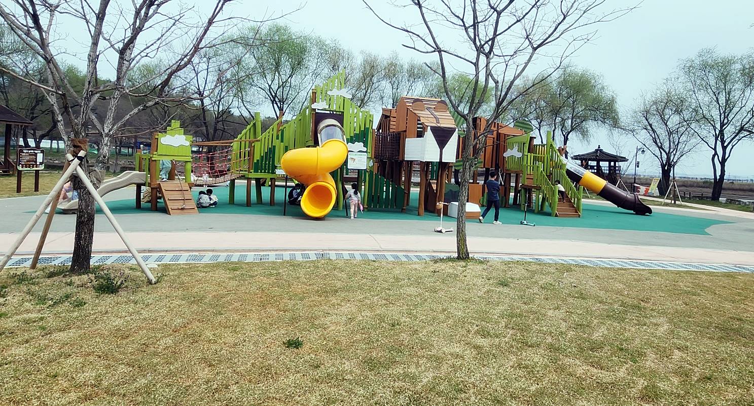 알아보니 이 놀이터는 최근에 친환경목재로 새롭게 리모델링을 했다고 합니다. 외지인들은 자주 볼 수 없으니 새 단장을 한지 안 한 건지 잘 몰랐으나 검색을 통해서 알게 되었다. 친환경 놀이시설이라 그런지 더욱더 마음은 안심이 됐다. 그리고 육안으로도 충분히 깨끗하고 관리가 잘 되어 있구나 를 느낄 수 있었다.