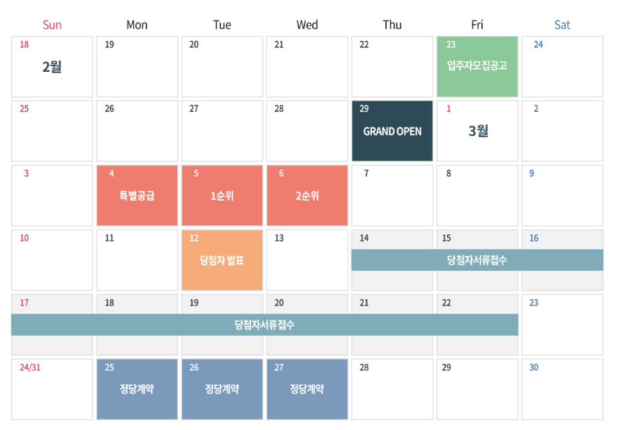 3월 4일 특별공급 청약을 시작으로 5일에 1순위 청약을 하여 정당계약까지 마무리 된 현장입니다.