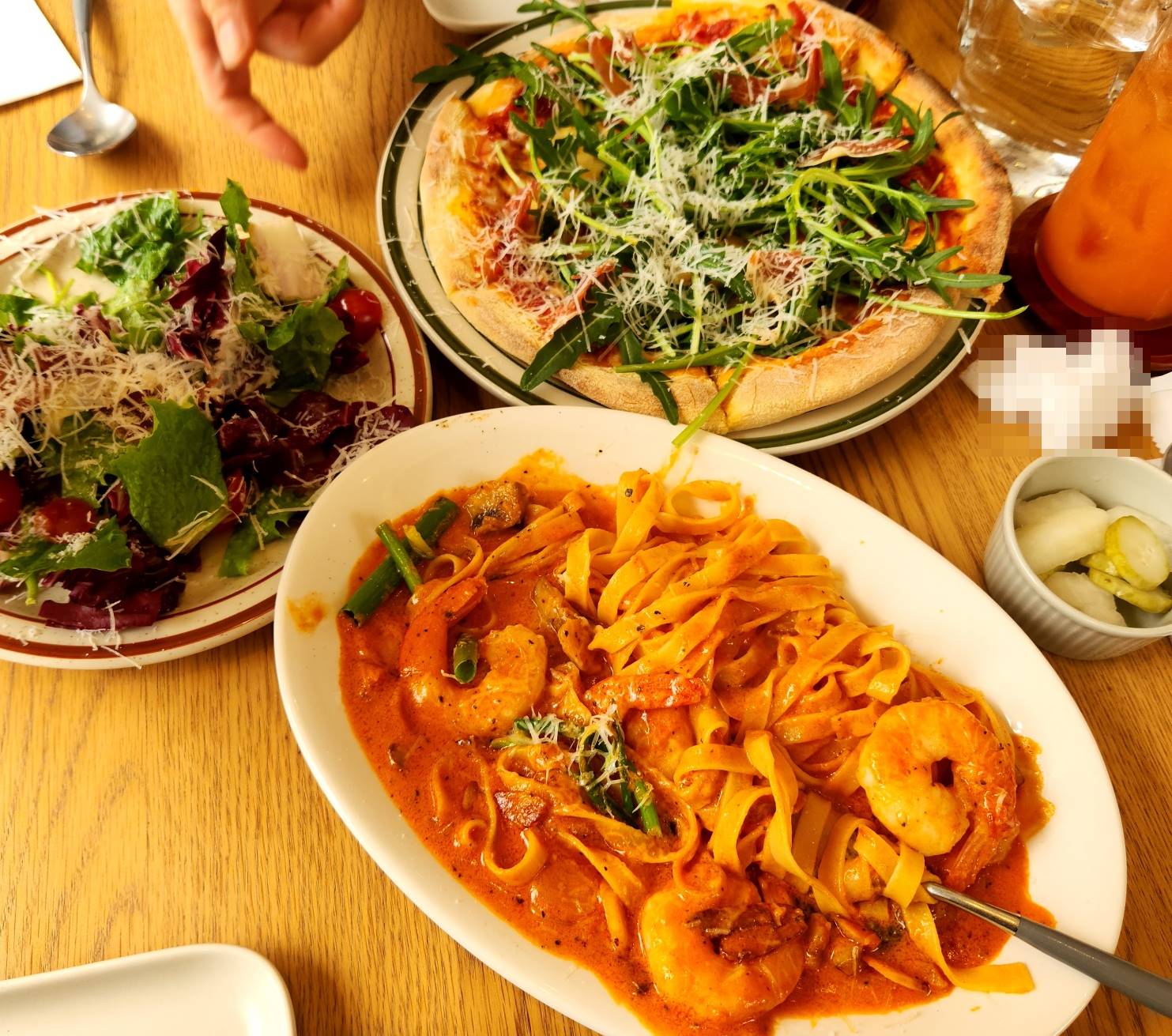 저희는 부엌세트 1로 쉬림프 로제 파스타, 루꼴라 프로슈토 피자, 레모네이드, 자몽에이드, 가든 샐러드를 주문했고 제일 먼저 음료수부터 차례대로 서빙이 이루어졌다. 싱그러운 주스를 먹고 나니 입맛이 확 돌기 시작했다.