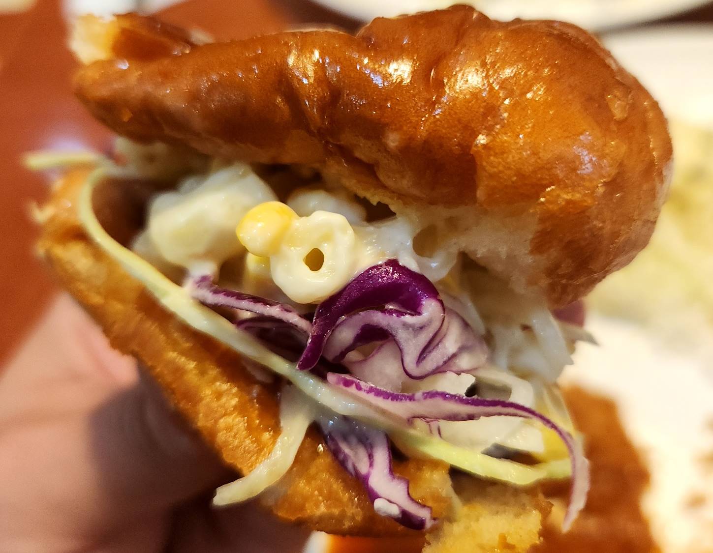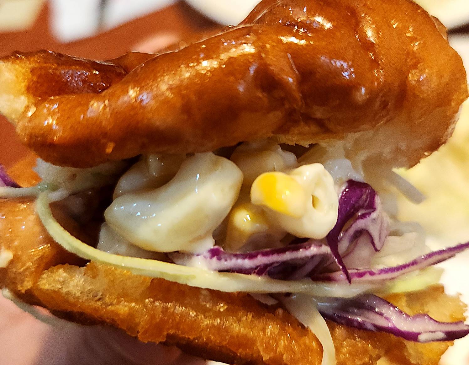 원래 빵은 위에 딸기 잼에 먹어야 진짜 맛있다. 그러나 빵이 두 개어서 한 개는 샌드위치로 변형~ 맛있는 거에 맛있는 거를 더해놓으니 이건 머 말로 할 수 없을 만큼 맛있는 맛이었다. 마요네즈 듬뿍 얹은 마카로니와 채소들의 아삭함이 튀겨진 빵의 기름과 어우러져 오묘한 맛을 냈다.
