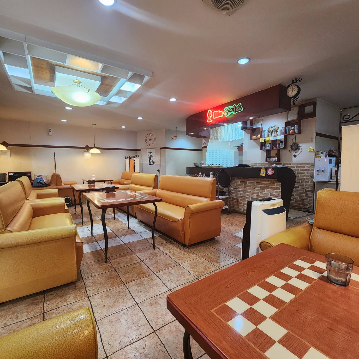실내는 요즘에 보기드문 예전 경양식 분위기의 소파 의자와 테이블이 있었고 테이블은 한 6개 정도 되어 보였다. 이런 분위기는 색달라서 오~ 오~ 이런 소리가 절로 나왔다.