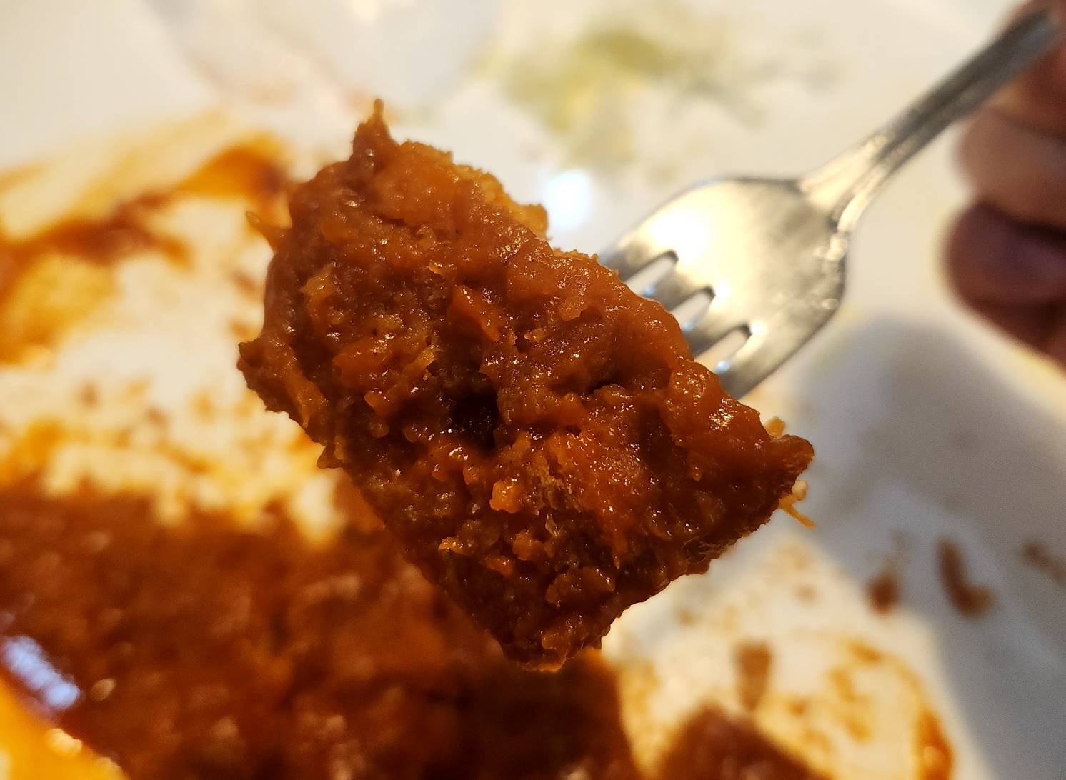 이집 돈가스는 일반 경양식 돈까스 처럼 소스가 부어져서나왔고 돈까스는 머라 말로 표현하기 어려운 색다른 맛이 있다. 음.. 돈까스 튀김옷에서 나는 맛일까 소스에서 나오는 맛일까 모르겠으나 직접 먹어봐야 맛을 안다. 양도 이만하면 성인남자가 넘어도 배 부를 정도로 양도 많았다.