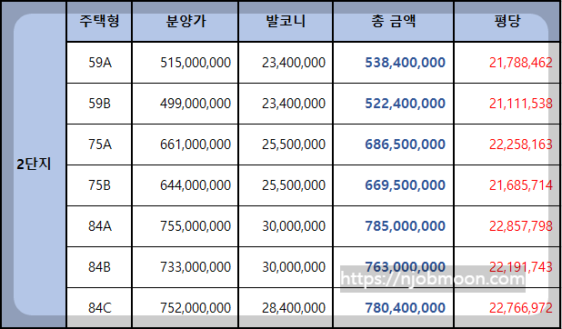 평당 분양가는 발코니를 포함한 분양가로 계산을 했으며 주택공급면적(㎡)으로 계산한 자료임을 알려드립니다.