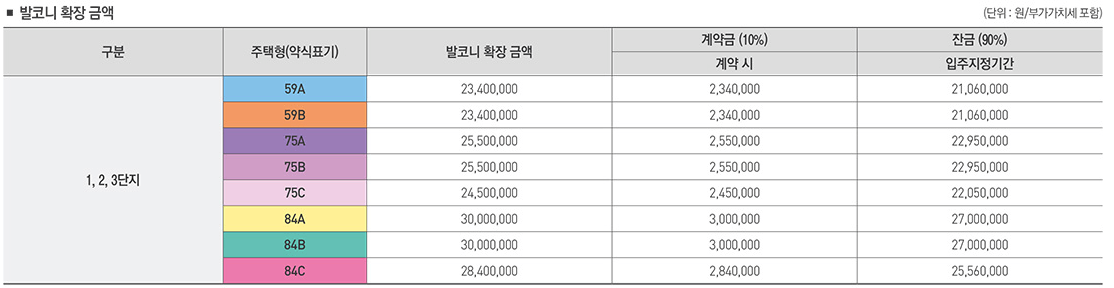 요즘은 대부분 발코니를 확장하는 추세이니 발코니확장 금액까지 첨부해서 평당 분양가를 산정하였습니다.