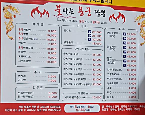 불타는 용궁 짬뽕 메뉴