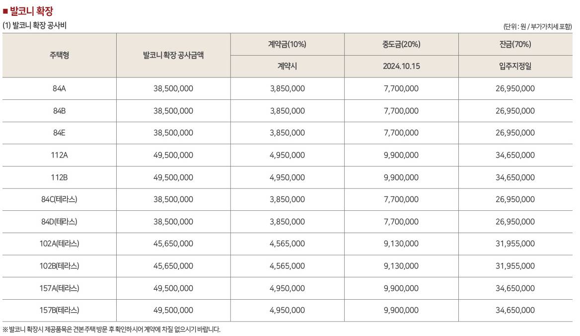 현재는 잔여세대 선착순으로 접수를 받는 상황이며 계약금 5%, 1차 계약금 (5백만 원), 중도금전액무이자를 내세워 분양에 열을 올리고 있는 모습이다. 모델하우스를 방문하면 정확한 사안을 알 수 있으며 옵션을 포함한 자세한 가격도 알아보실 수 있을 것이다.