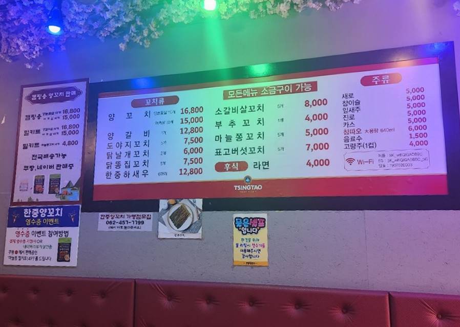 - 양고치 외에 새우꼬치, 닭날개꼬치, 마늘쫑꼬치등 여러 꼬치 종류 있다.