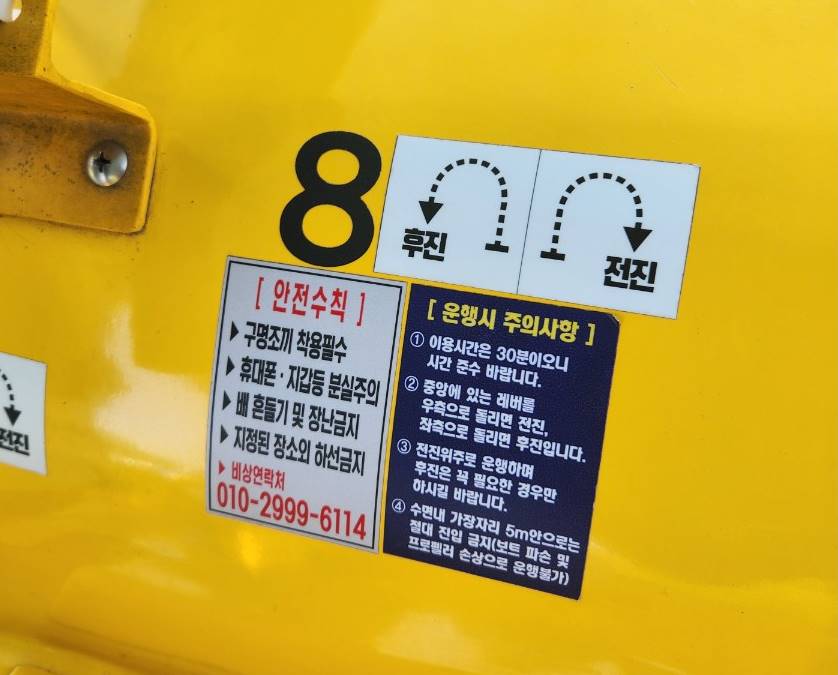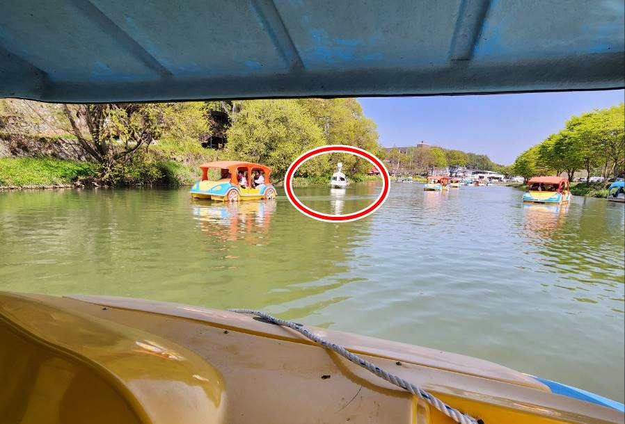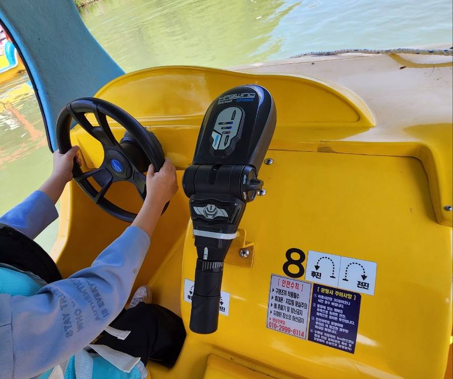 모터보트는 오락실 자동차 게임처럼 실제 운전석에 타서 핸들을 조정하게 되어있었고 오른쪽 레버같은거를 오른쪽으로 돌리면 앞으로 가고 왼쪽으로 돌리면 후진이 되는 기계였다. 초등학생 아이는 재미있는지 계속 운전을 하였으나 아직은 미숙한지 지그재그 지그재그 가다가 다른 오리배와 부딪히기도 하고 그래서 중간에 자리를 체인지했다.