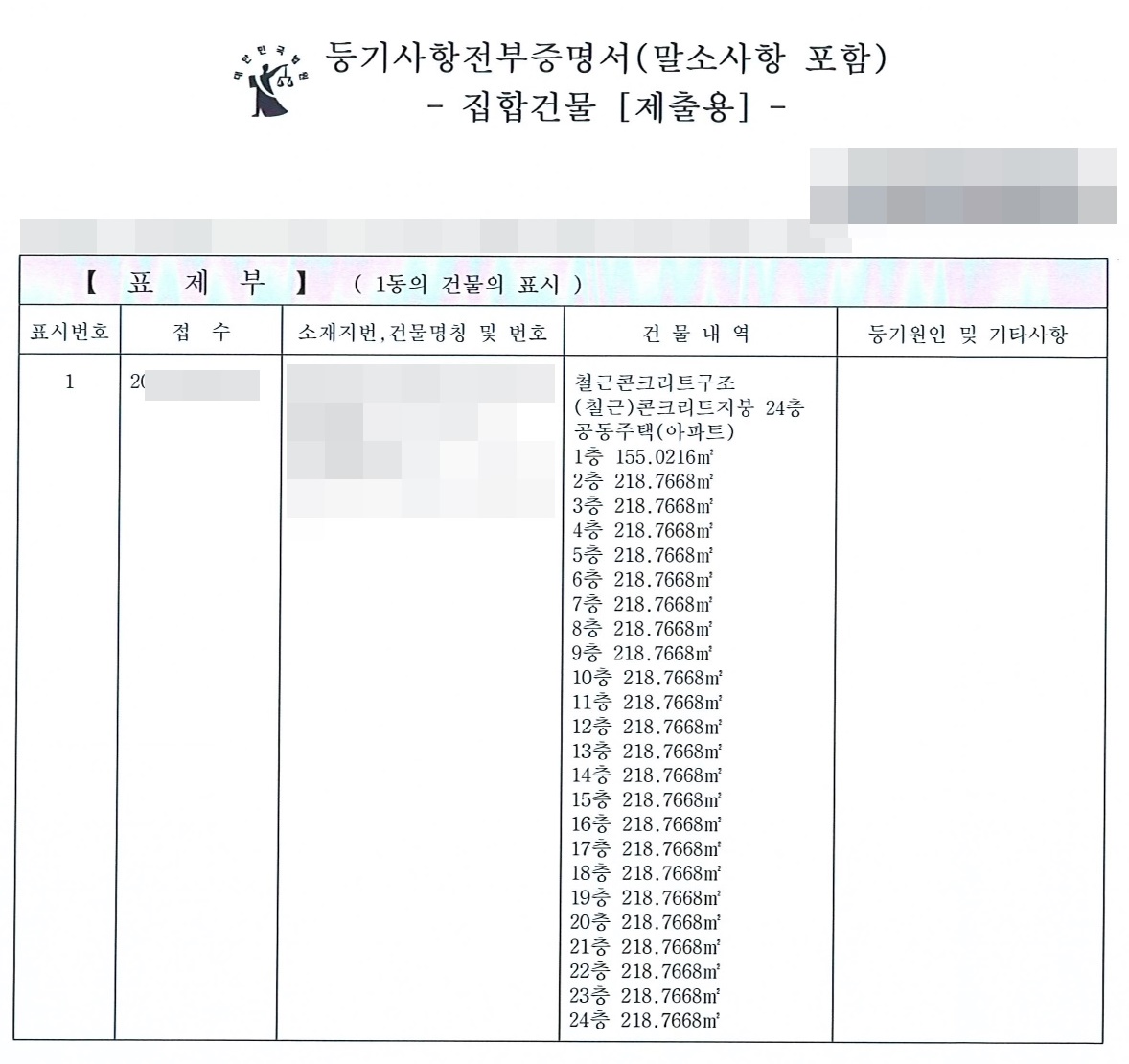 표제부, 갑부, 을구 같은 용어가 생소해서 한눈에 보기 어렵지만 이를 간단하게 아파트를 예시로 들면 별로 어렵지 않다.
