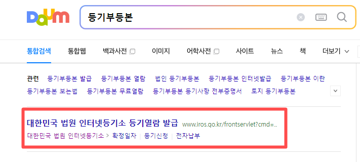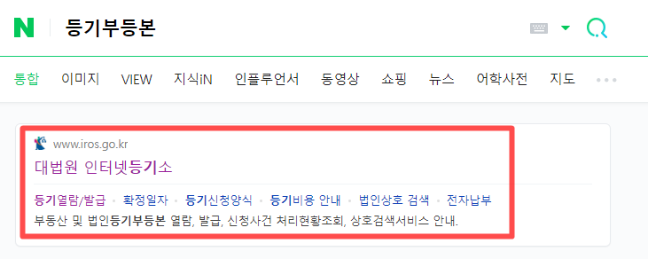 먼저 포털사이트에 "등기부등본" "등기부등본열람""등기부등본열람"만 쳐도 처음에 등장하는 사이트는 "인터넷등기소"이다. 여기에서 등기부등본 열람, 발급이 가능하고 법인 등기부등본 열람, 발급도 가능하다.